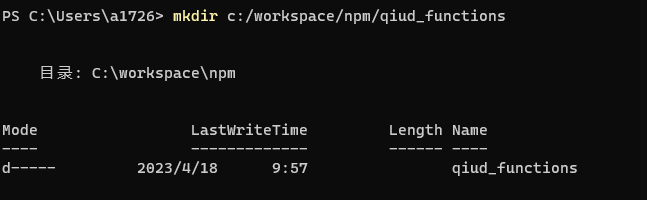mkdir c:/workspace/npm/qiud_functions